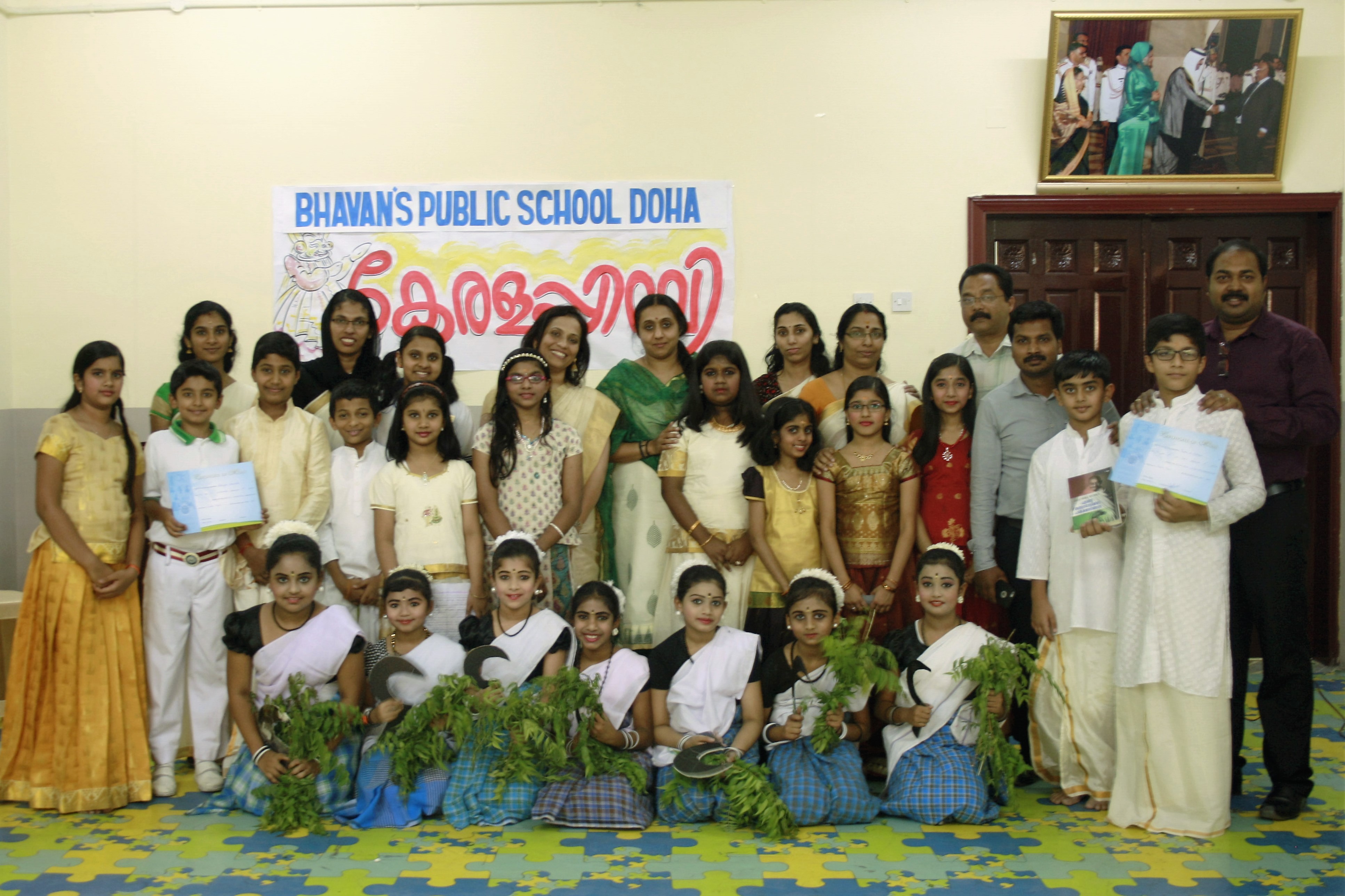 The 61st Kerala state reorganization day was celebrated at all three campuses on November 1st with glory portraying the traditional cultural heritage of Kerala state through an array of various cultural programmes that was designed and presented by Malayalam Department. Songs depicting the cultural glory and thematic dance projecting the aesthetic charm was presented by the students in all three campuses. Students at MidMac also presented Edassery Govindan Nair’s poem Poothapaattu through dance visualization. The programme was anchored by students of Malayalam department.Mr.Bijeesh at Wakra and Mr Ajith in Matar gave a speech highlighting on the importance of Malayalam language. Quiz was also conducted for the students and the winners were given certificates and novels as a mark of honour.Principal Shri M.P.Philip at Matar, Headmistress Mrs. Shailaja Krishnakumar at MidMac and Director Administration Mrs Anjana Menon at Matar in their speech highlighted the rich cultural diversity of Kerala. At Wakra Mrs Soumyapriya Head of Malayalam department and Mrs Sreekala in Matar proposed the vote of thanks.