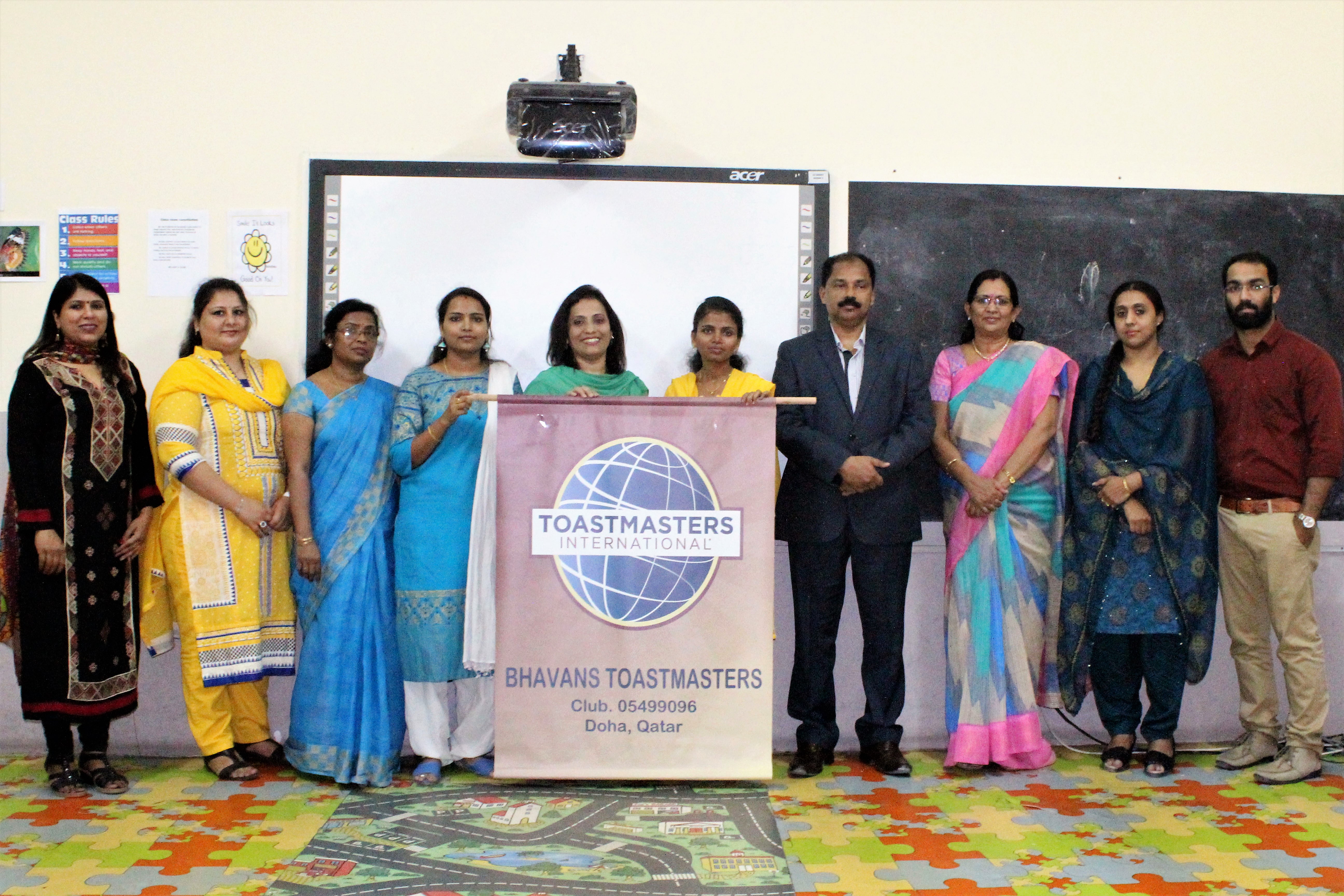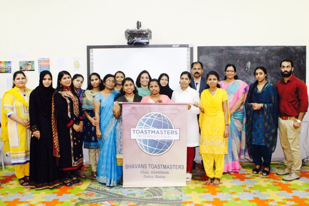 Bhavan’s Toastmasters witnessed the proud moment of installation ceremony of new Executive Committee on 17th June 2017.Bhavan’s Toastmasters was chartered in 2016 and have successfully completed 15 meetings. Elect Area Director 24 Div. H TM Asha Shiju congratulated the outgoing office bearers for the hard work and dedication to office and installed the incoming office bearers. President Mrs.Shailaja Krishna Kumar and her team with pride took their oath as office bearers for the new term.TM Asha outlined the challenges and responsibilities to the office bearers and they sworn in to make the club a viable force and to march towards becoming one of the best club in Qatar. Area Director 58 TM Sunita Saini graced the occasion. Bhavans Toastmasters Club bagged the ‘Emerging Club’ award in the Division S ‘STAR AWARD 2017’.It also received Membership Retention Award from District 20 at Bahrain.