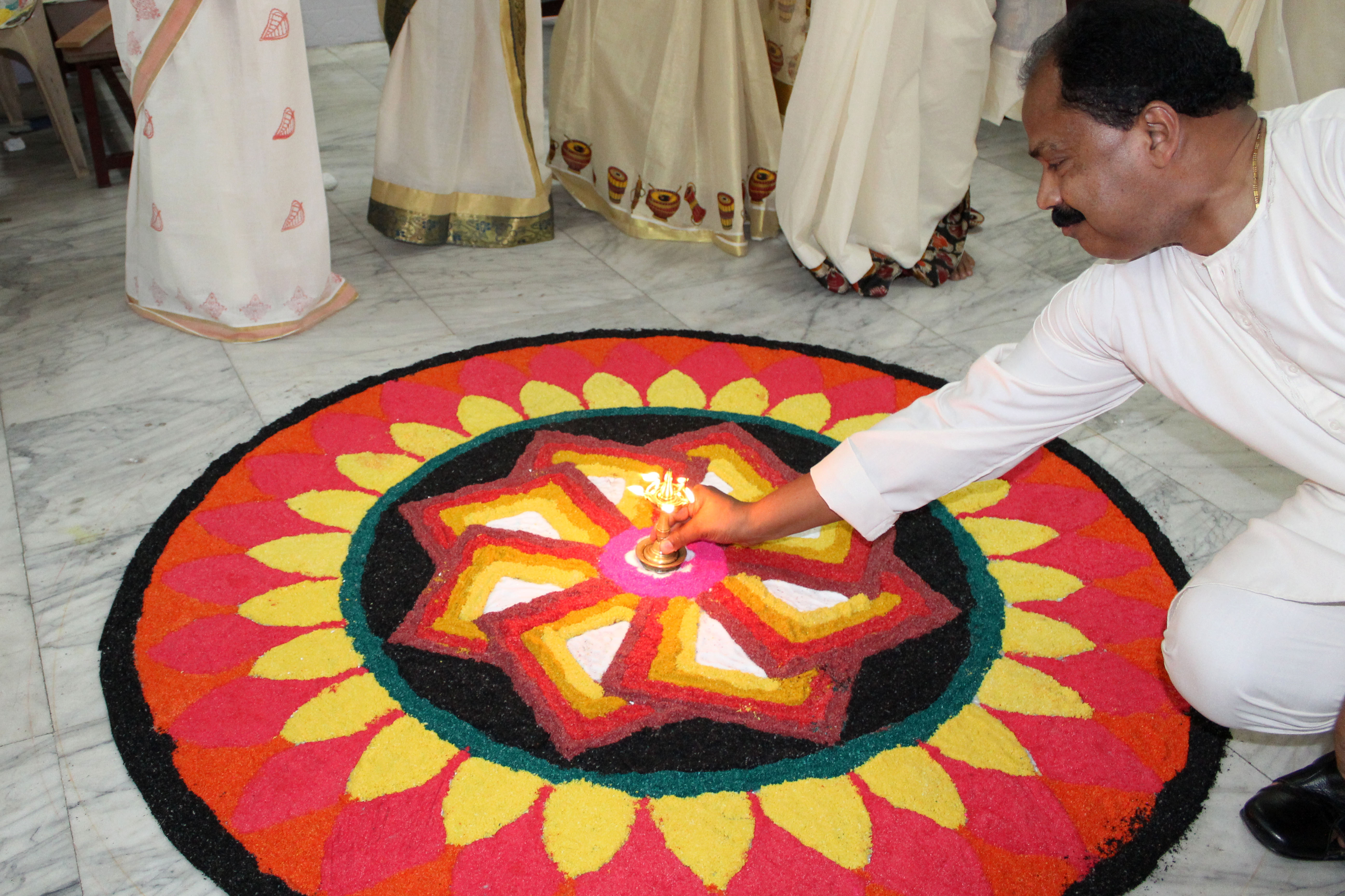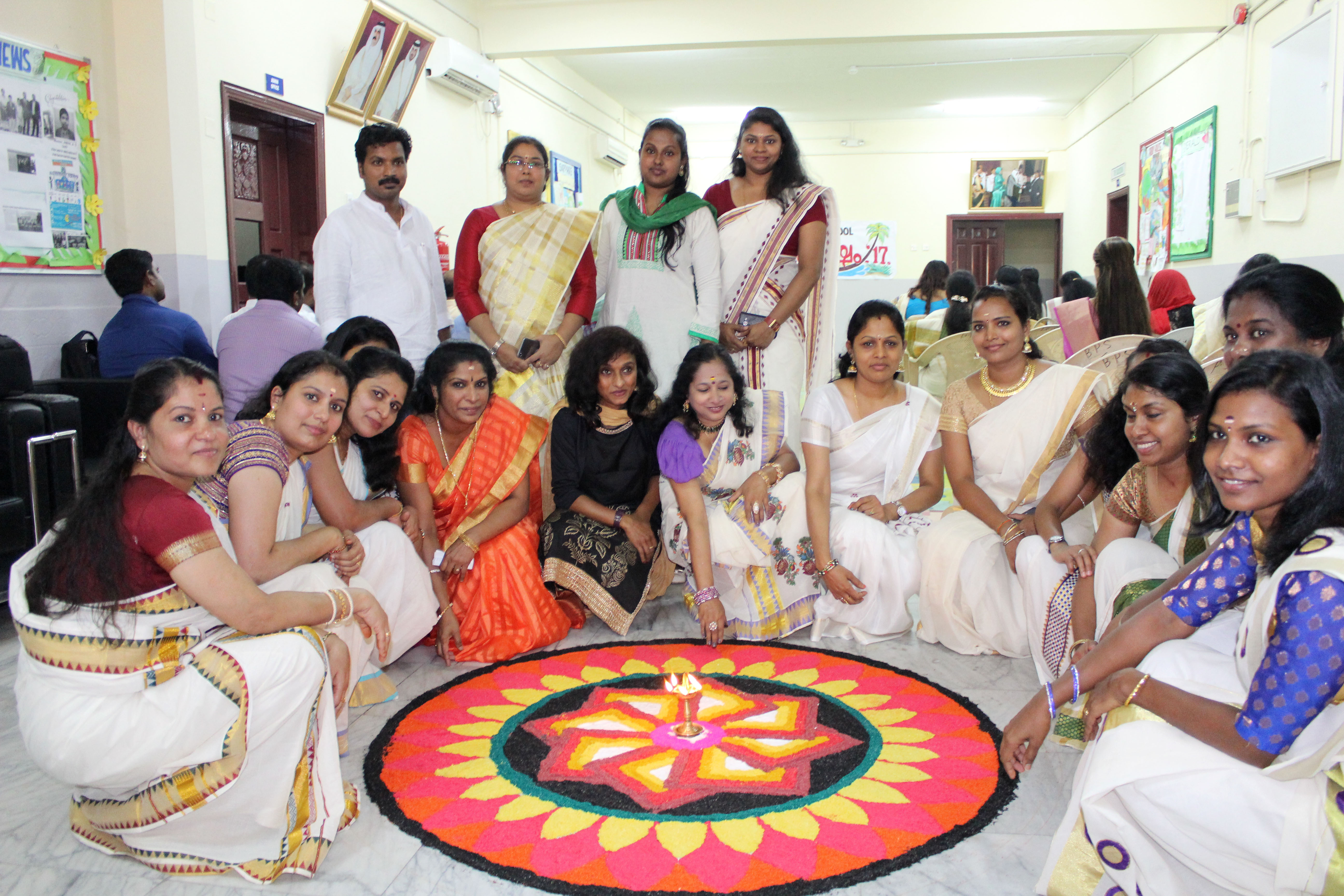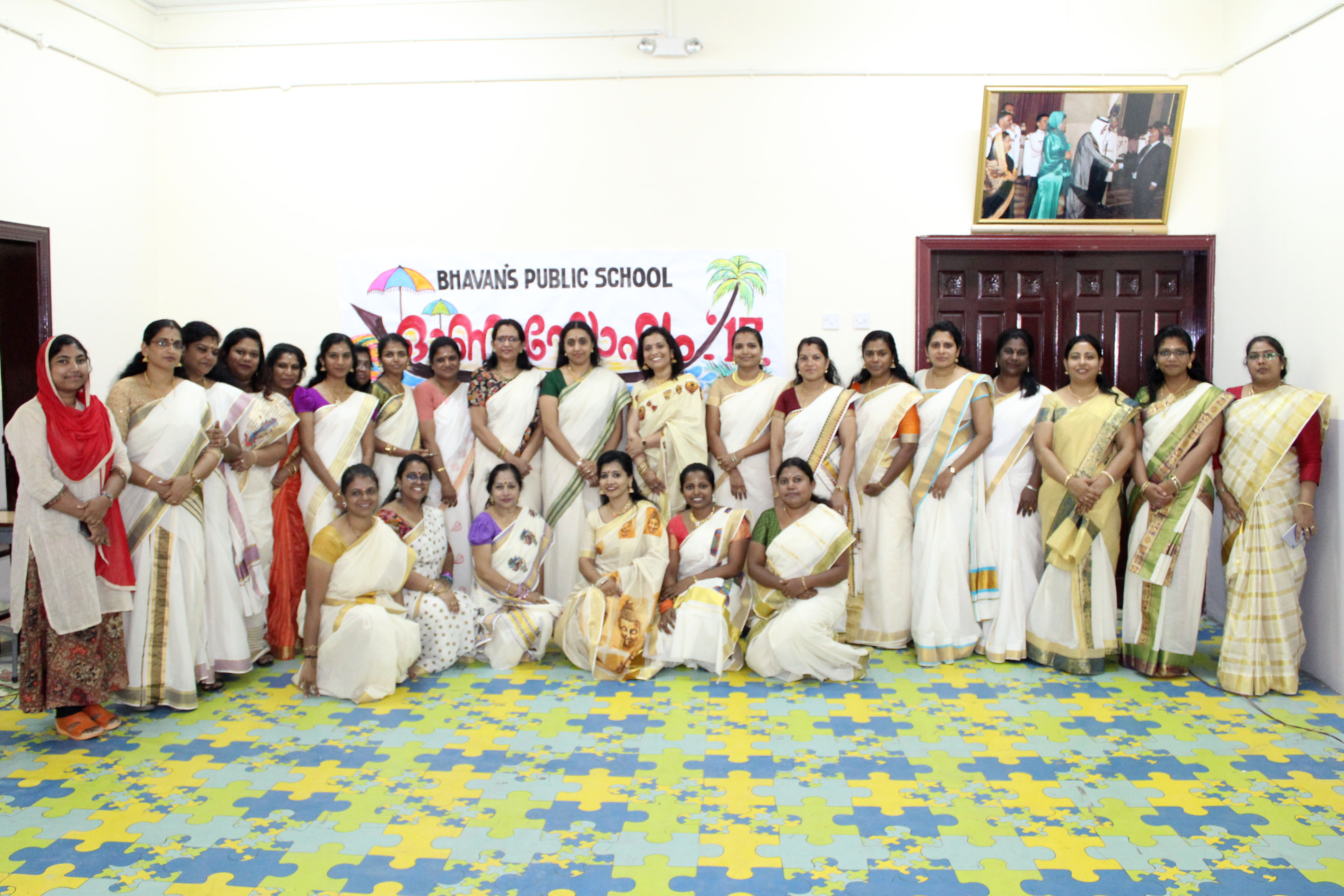 The mood was upbeat as the staff, resplendent in the traditional dresses partook in the celebrations and enjoyed the sumptuous onasadhya. The programme was anchored by Mrs Shinsy Thomas and fun games by Mr Vijeesh.The vote of thanks was proposed by Headmistress Mrs Shailaja KrishnaKumar.Activity coordinators Mr Ranjeet and Mr Gokul along with Arts, Performing Arts and PE Department well-coordinated the festive celebrations.