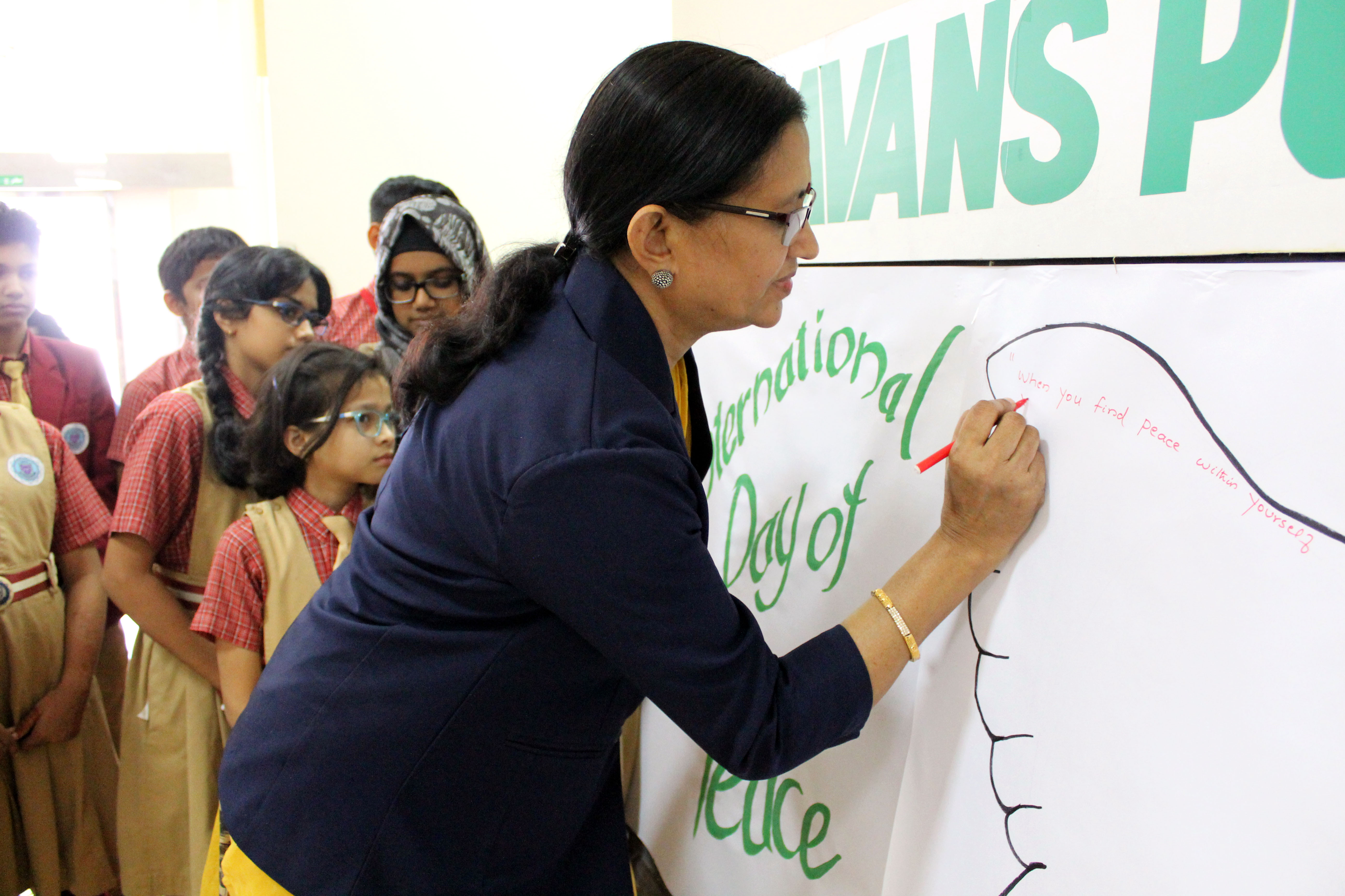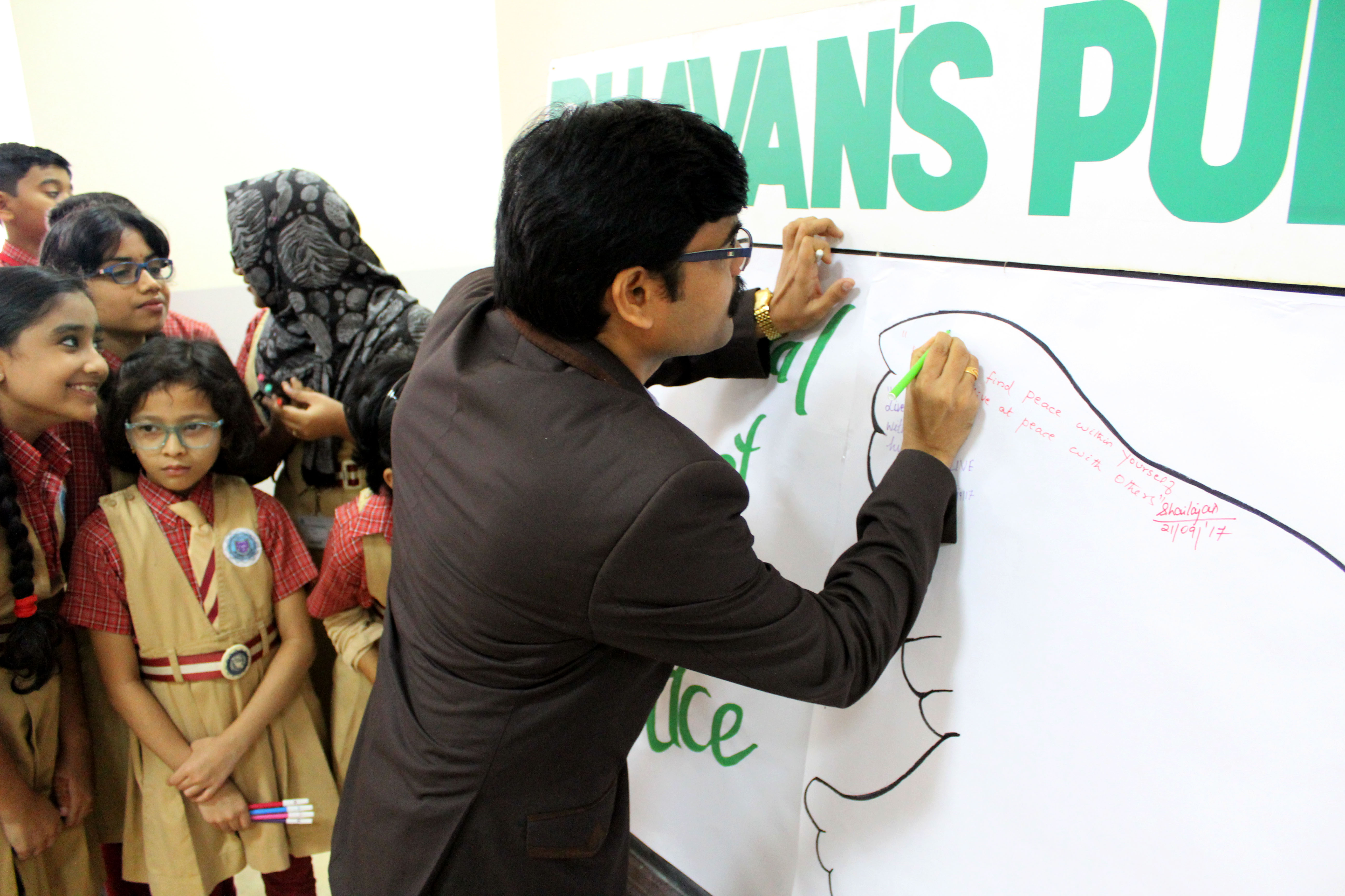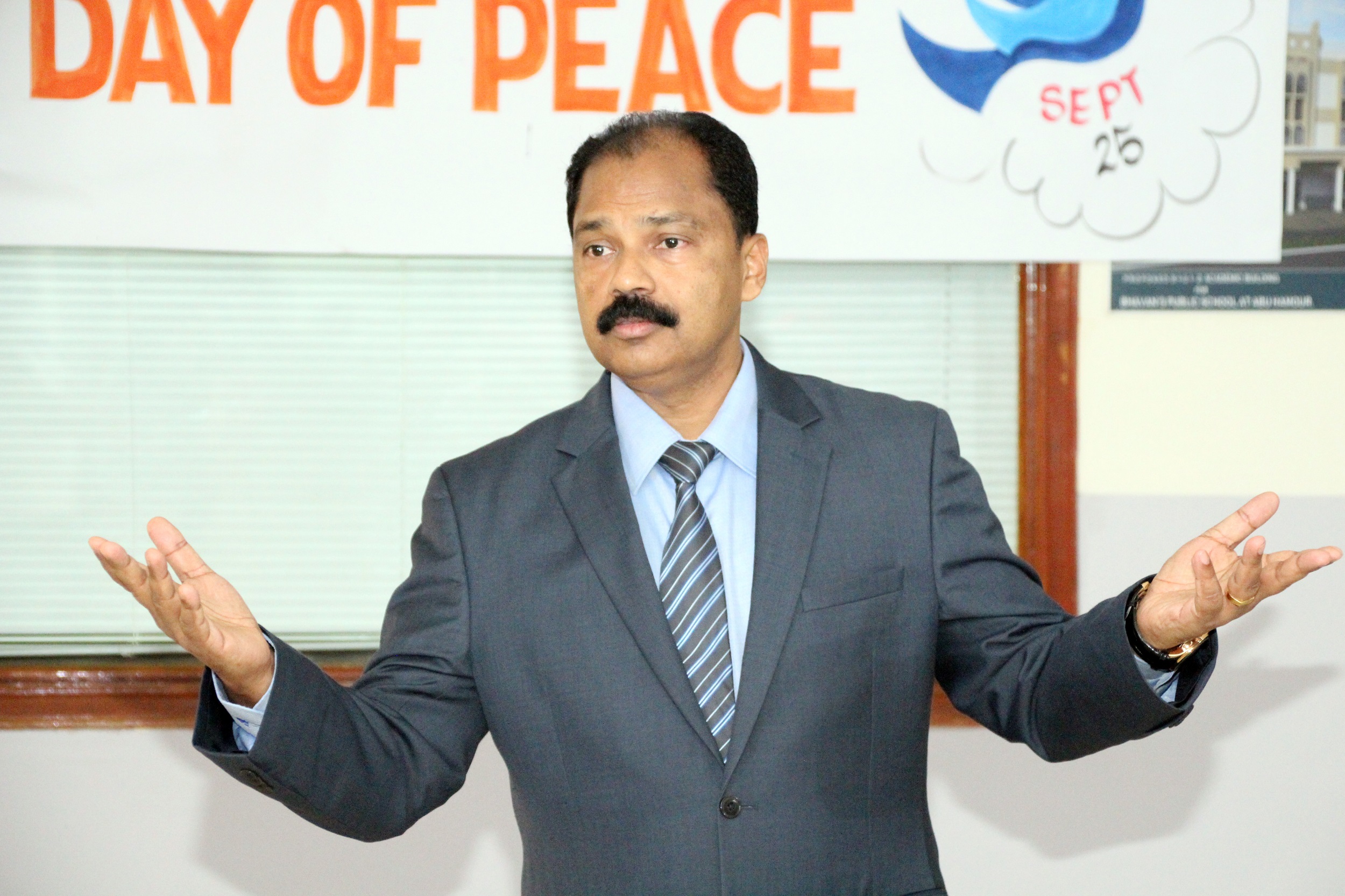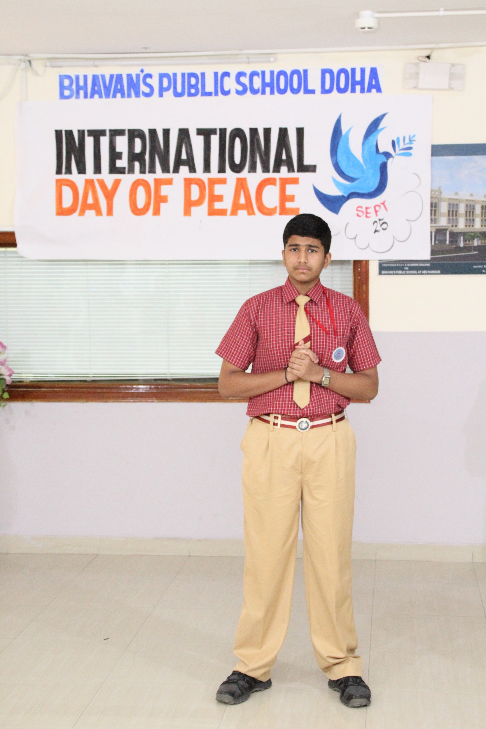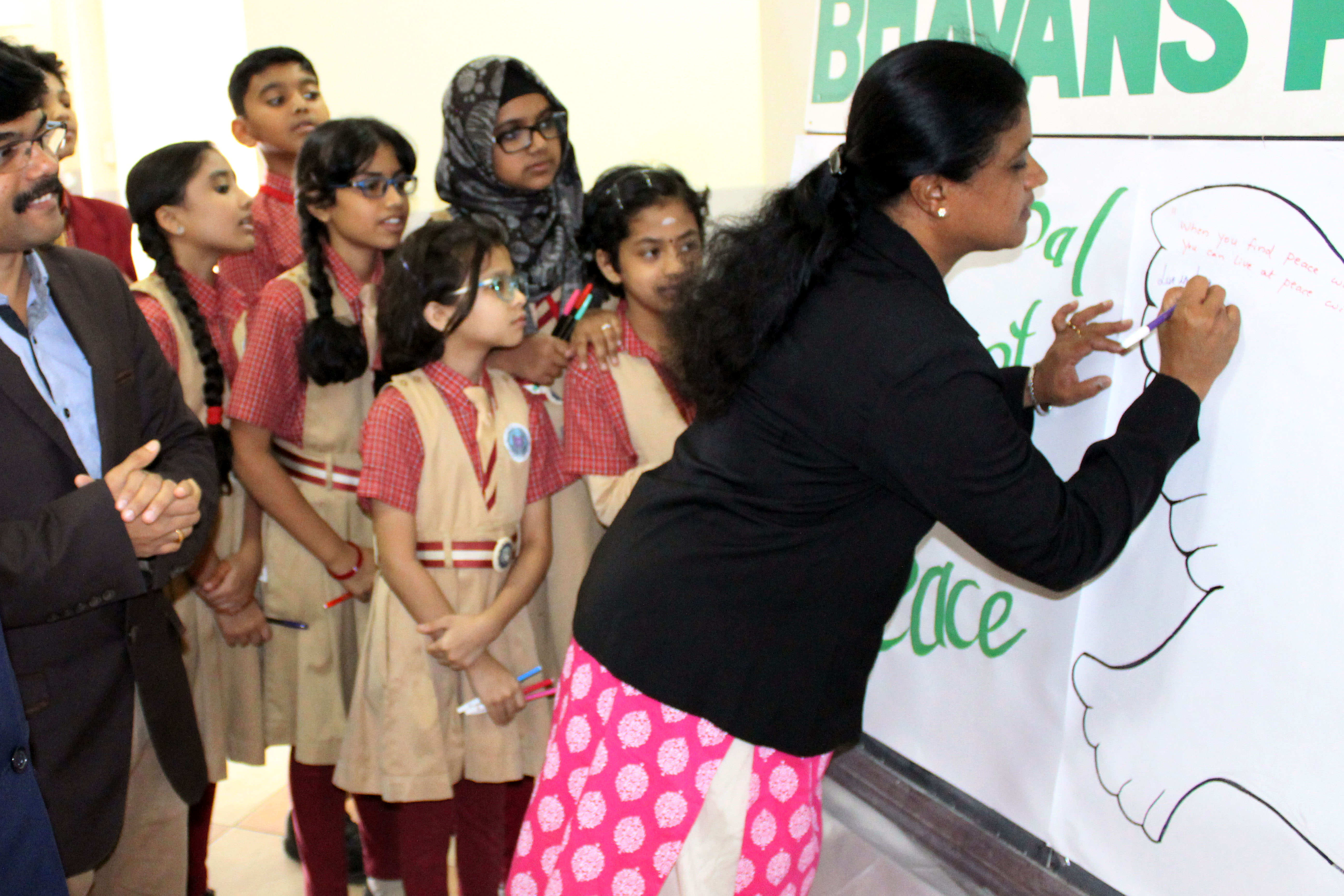 International Day of Peace was celebrated on 25th September in all three campuses of Bhavan’s Public School with an aim to inspirit the students to make a positive difference in the world. As part of the theme students and the teachers in charge spoke about secularism and the importance of peace on Earth. In the senior campus Master Gautham M. gave an informative speech pointing to the contemporary issues and the problems faced by the refugees. Students also staged a thematic role play and skit. A special dance programme was performed to depict this year’s theme; ” Together for Peace: Respect, Safety and Dignity for all. Students from junior classes presented a melodious song. The kids personified as Mother Teresa and Dalai Lama conveyed a puissant message to be the brand ambassadors of peace. Also collage making, craft work was conducted in the campuses, addressing the theme ‘peace’ under the guidance of Arts Faculty. Principal Mr M.P Philip reminded the students the need of the day and said that “peace starts with a smile”. He also said that all efforts to spread humanity must be considered supremely divine. Headmistress Mrs Shailaja KrishnaKumar and Mrs Asha.Shiju stressed the importance of respect, safety and dignity for everyone and also instigated a positive vibe in the campuses by a powerful message to set a tone of unity and peace wherever we are. Academic coordinators, Activity coordinators and teachers graced the occasion.