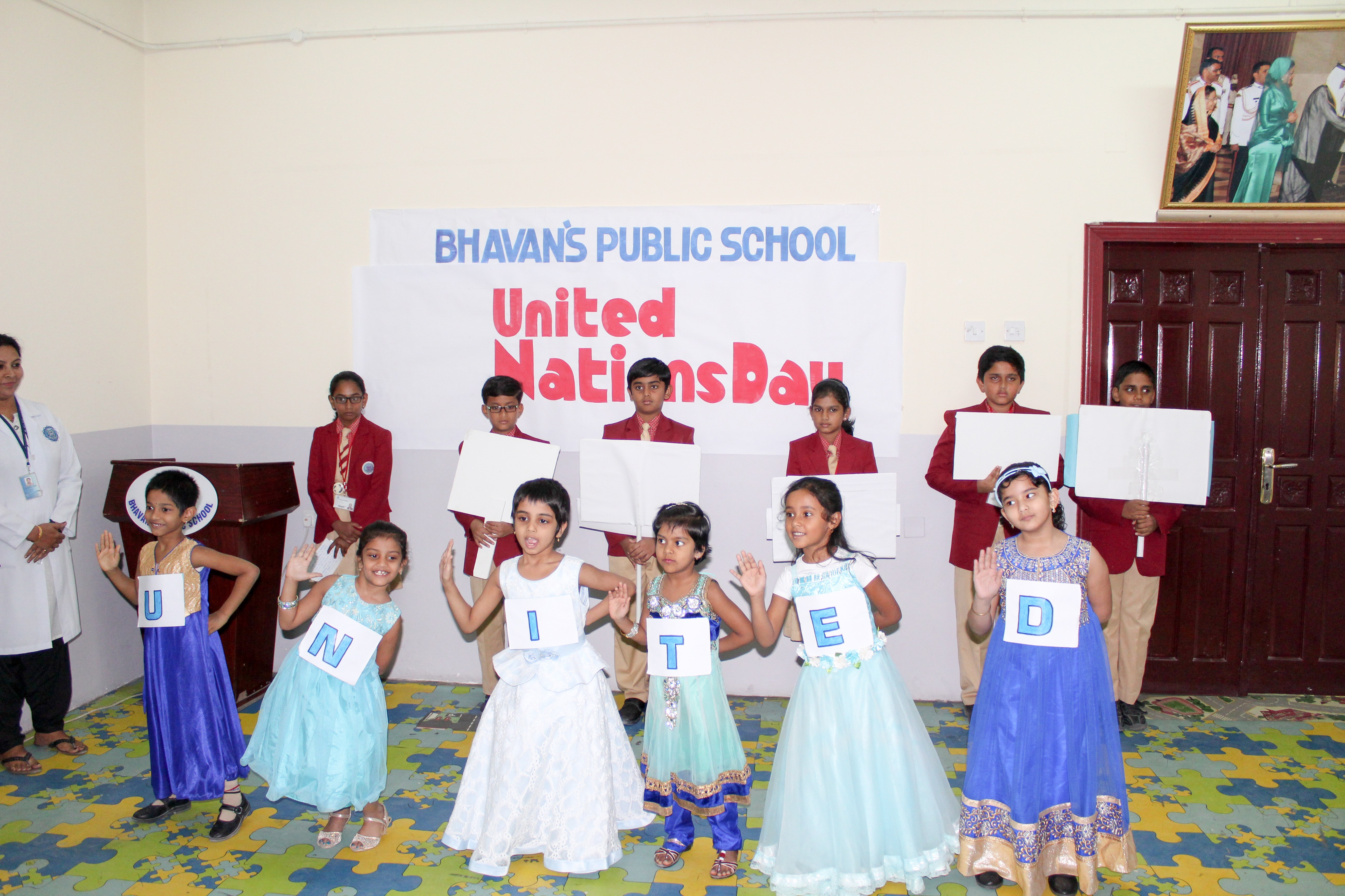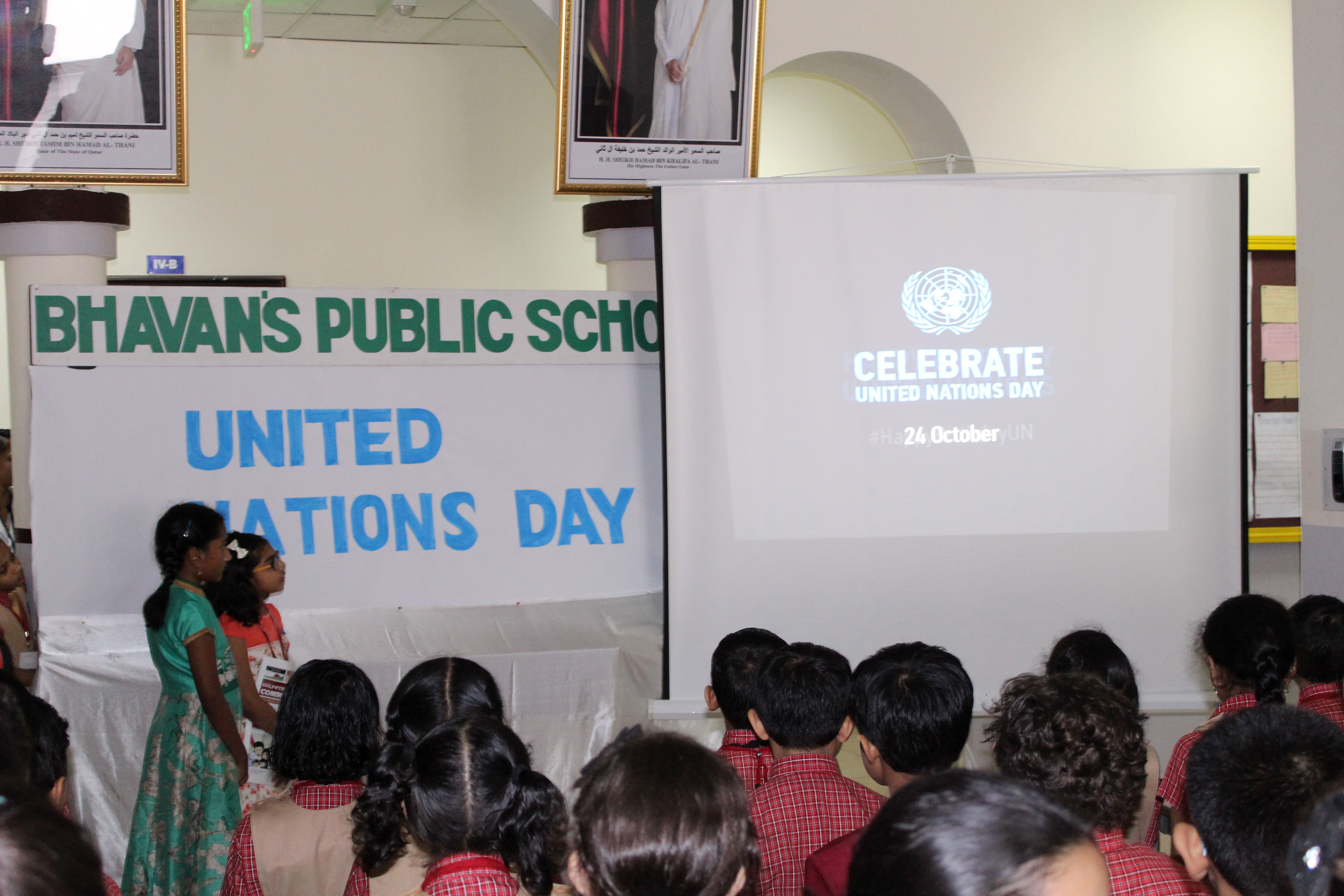 Bhavan’s Public School observed UN Day in all the three campuses with great vitality and vivacity with an aim to celebrate the humanitarian work done by the United Nations .To mark the day the students of class 12 at Wakra Campus presented the theme ‘Everyone for all’ through a short skit and Master Amal Xavier delivered a befitting speech to highlight the valuable contributions and activities of the UN for the well being of humanity. A special assembly was conducted at Matar in which the ‘Zealous Acolytes’ highlighted the incredible contribution of the United Nations, with a unity dance by grade 1 and a speech which upheld their principles by grade 6.An exciting quiz was conducted by Mrs.Reemol which assisted the students to acquire more information on the activities of UN.At New Salata Campus students had an interactive session about UN and also were shown PowerPoint. Principal Mr.M.P Philip urged the senior students to study more about the functioning of United Nations and its allied organisations. Headmistress and Academic coordinators in their address to students spoke about the major role UN plays in making world peace and maintaining the sovereignty of all the nations worldwide.
