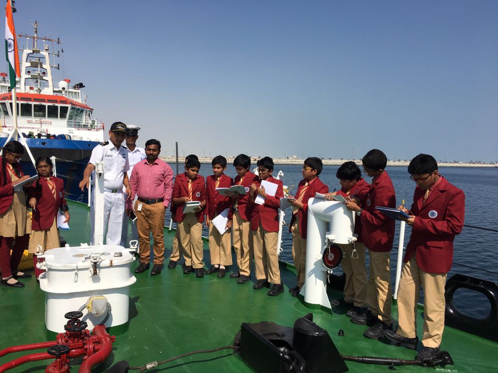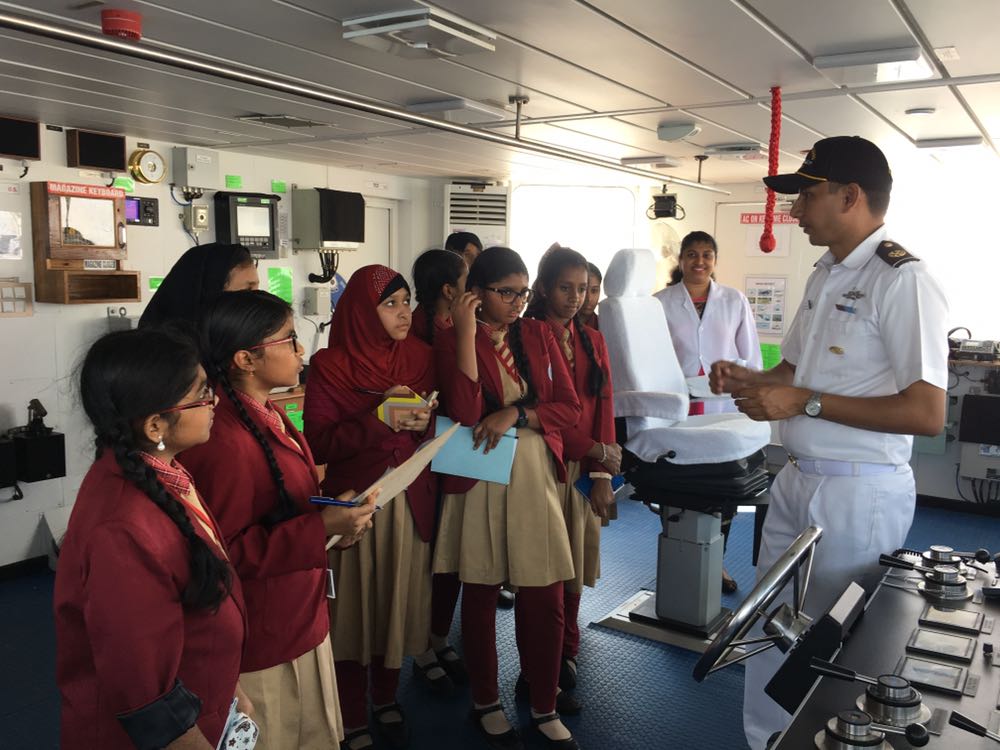 Students were divided into two groups and explored the nook and corner of the ship and interacted with the crew on various matters related to the ship. The guides explained in detail the functioning of the ship and its mission. Students collected all details and were quite excited to have such a firsthand experience of a naval ship!