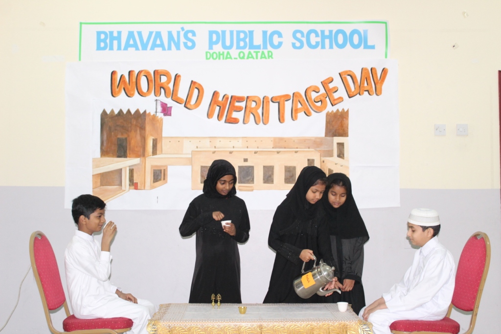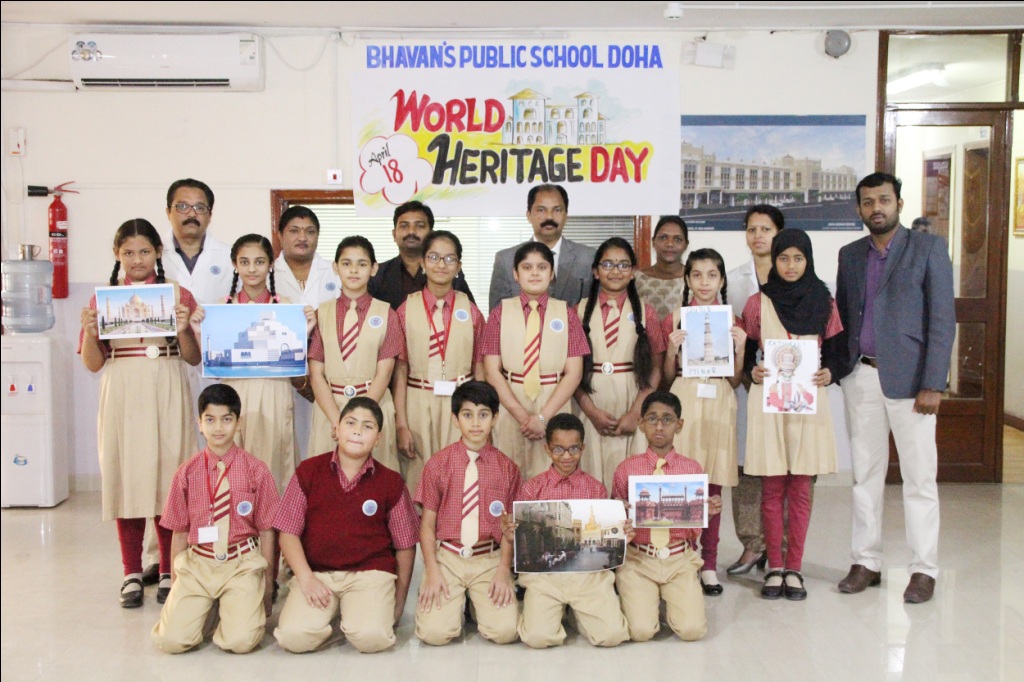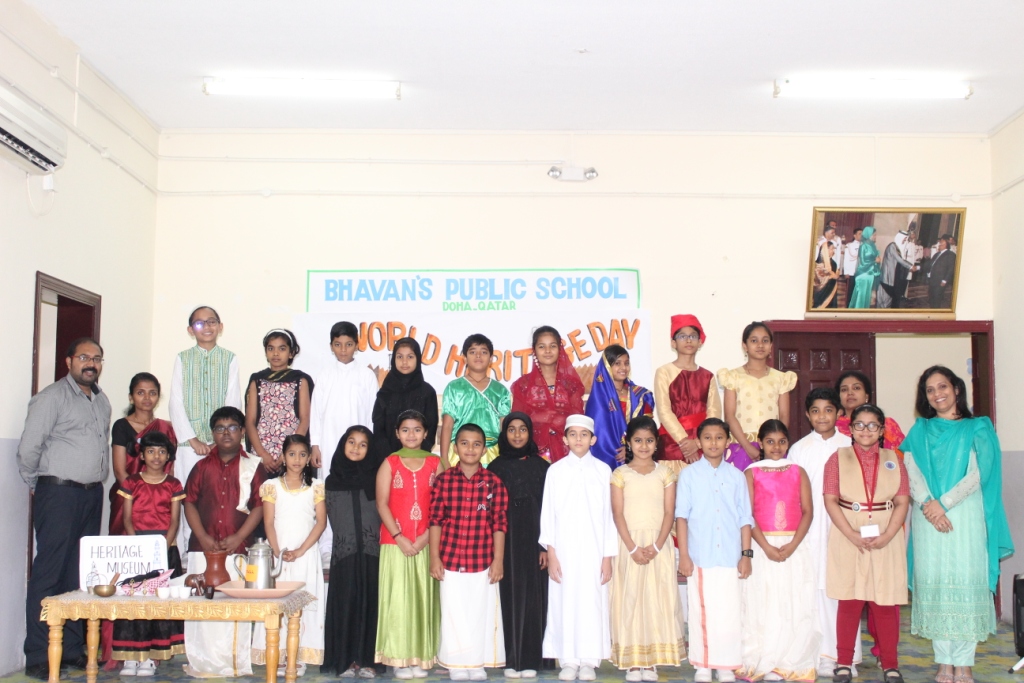 World Heritage Day was observed on 17th April 2018 with utmost zeal, with an objective to induce and enkindle respect for the boundless heritage of the world. To foster awareness among the students of the significance of preservation of our rich cultural heritage, the young heritage lovers, lined up an appealing show of heritage of Qatar and India along with a short documentary, providing a glimpse into the historical attractions around the world. The Heritage Museum by the students rendered a special discourse to the message of conserving our heritage. Principal, M.P.Philip opinioned that celebrating this day would encourage the people all over the world to consider the significance of cultural Heritage in their lives, communities and identities and to promote awareness of its diversity .H.M. Mrs. Asha Shiju exhorted the students to take a pledge to respect, embrace and stay true to our heritage. Mrs.Shailaja Krishna Kumar stressed on the need for preserving the culture and Heritage of every nation.