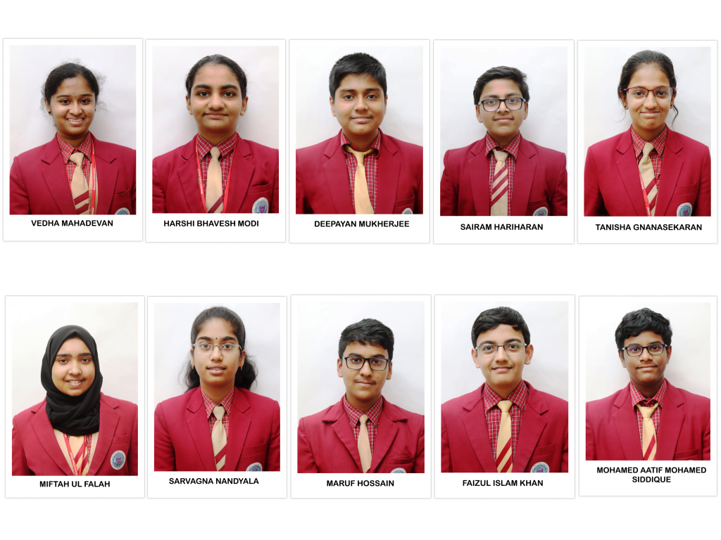 9 students secured ‘A1’ grade in all the subjects. They are: Vedha Mahadevan, Harshi Bhavesh Modi, Deepayan Mukherjee, Sairam Hariharan, Tanisha Gnanasekaran, Miftah Ul Falah, Sarvagna Nandyala, Maruf Hossain and Faizul Islam Khan.